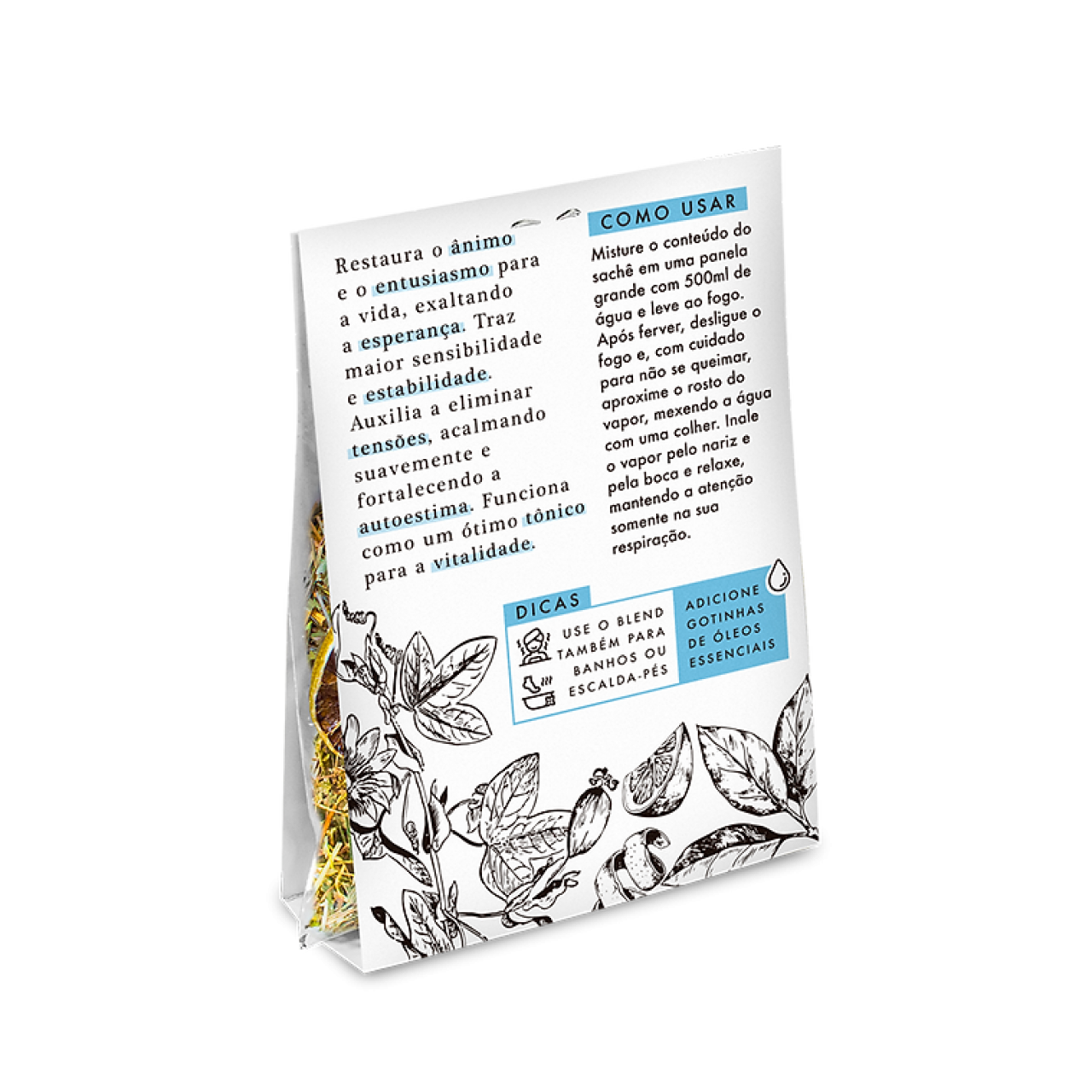 Misture o conteúdo do sachê em uma panela grande com 500ml de água e leve ao fogo. Após ferver, desligue o fogo e, com cuidado para não se queimar, aproxime o rosto do vapor, mexendo a água com uma colher. Inale o vapor pelo nariz e pela boca e relaxe, mantendo a atenção somente na sua respiração.