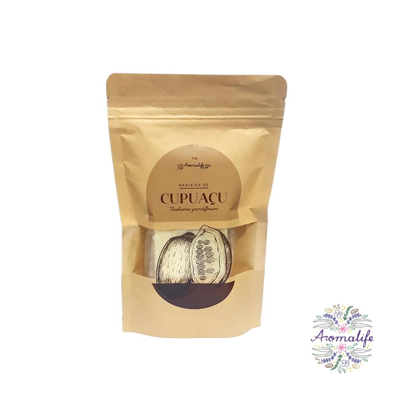 O cupuaçu é nativo da região Amazônica e o cupuazeiro atinge de 4 a 18 metros de altura, é parente do cacau, possui aroma característico e sabor inconfundível, sendo sua polpa usada muito em sucos, sorvetes, cremes e doces. Com um rendimento de aproximadamente 45% das sementes, sua manteiga tem baixo ponto de fusão (30º C) e é prontamente absorvida pela pele, sendo que quando misturada à água, absorve cerca de 240% a mais do que a lanolina, sendo um perfeito substituto a ela em formulações cosméticas, extremamente emoliente. Seus fitosteróis atuam a nível celular regulando o equilíbrio hídrico e a atividade dos lipídios da camada superficial da pele. É altamente indicada no tratamento de dermatites e afecções da pele, por seu poder de estimular processos de cicatrização. A manteiga de cupuaçu na aromaterapia pode ser usada em lip balms, em cremes e loções corporais quando se deseja um poder de nutrição maior, podendo ser usado com ou sem a presença em conjunto de óleos vegetais. Recomendamos cerca de 3% na formulação, derretendo em banho maria, adicionando-se os demais ingredientes e incorporando todos eles, exceto os óleos essenciais, que devem ser acrescentados preferencialmente após a mistura atingir temperatura ambiente. Também pode ser usados em toucas capilares para hidratar e dar brilho aos fios. Modo de usar: 1 – Puro, 2 - Derreta em banho maria 1 colher de sopa de Manteiga de Cupuaçu adicione 3 gotas de óleo essencial de sua escolha no uso facial ou 6 gotas no uso corporal ou capilar. 3 - Derreta em banho maria 1 colher de chá de Manteiga de Cupuaçu e 3 colheres de sopa de base neutra Aromalife (creme, loção ou gel) e 9 gotas de óleos essenciais de sua escolha no uso facial ou 18 gotas no uso corporal.