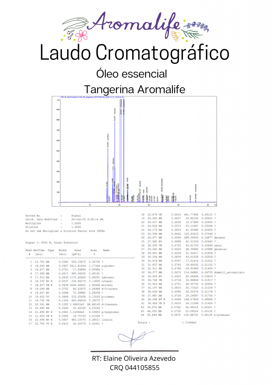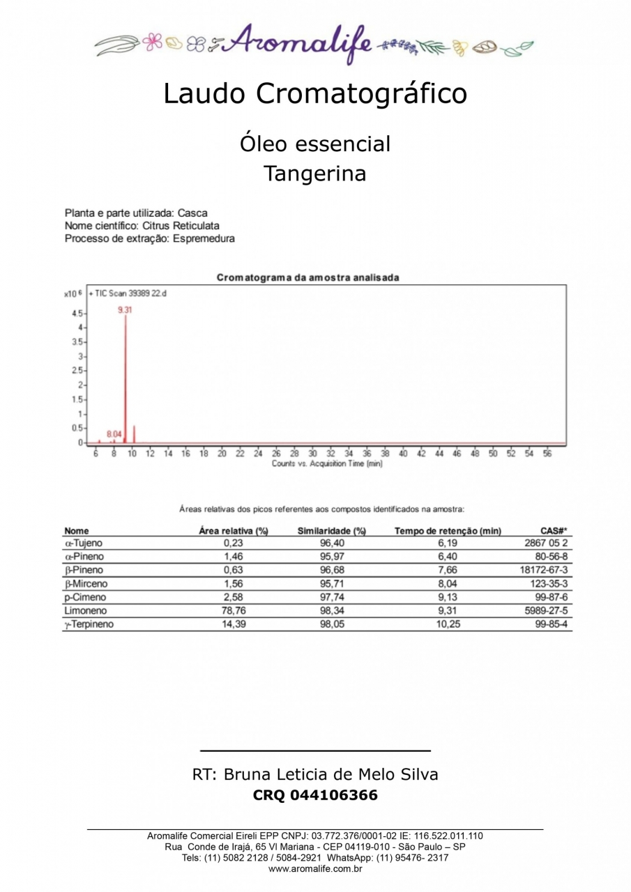 Composição: Citrus Reticulata Peel Oil (d-Limonene, Citral, Linalool). Natural da própria planta.
