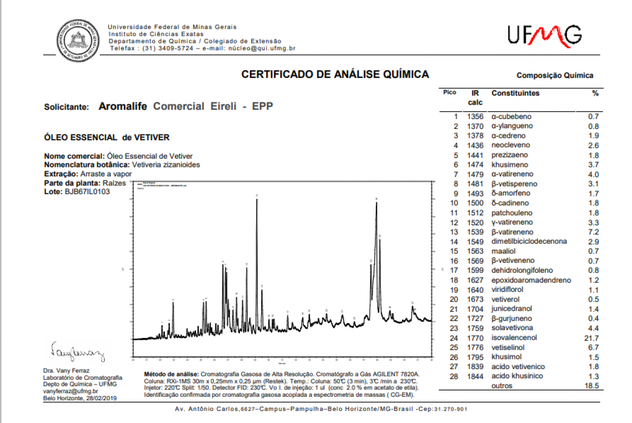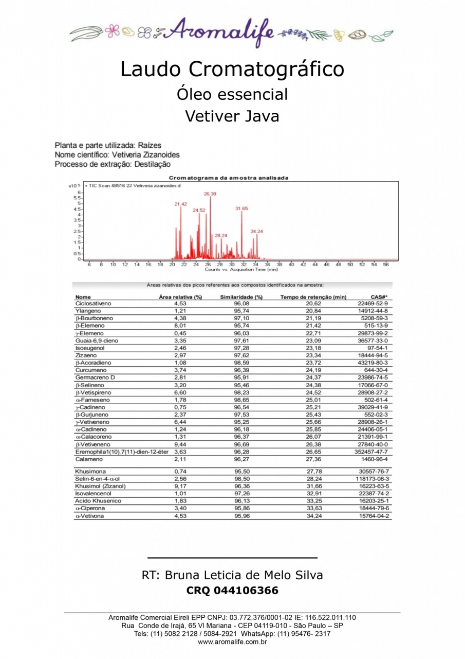 Composição: Vetiveria Zizanioides Root Oil / Chrysopogon Zizanioides Root Oil.