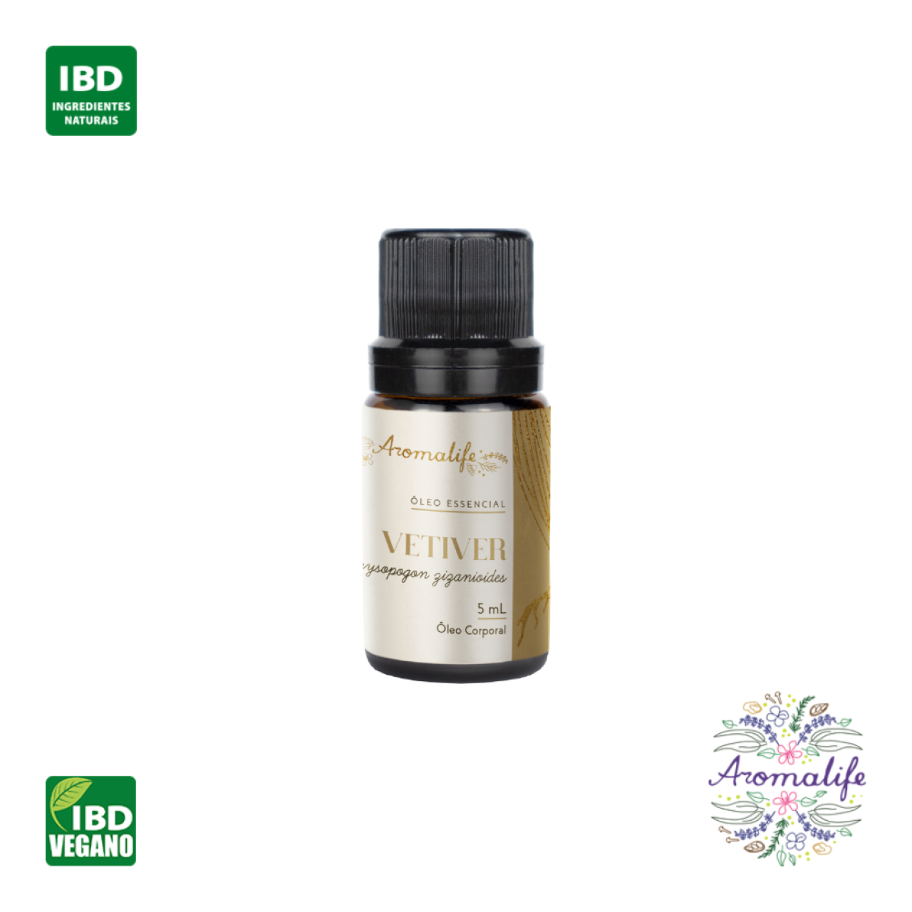 Conhecido como “o óleo da tranquilidade” e por seu grande poder de aterrar pessoas muito aéreas, as propriedades do óleo essencial de vetiver vão além. Na perfumaria é muito apreciado por seu aroma terroso, lenhoso e intenso, sendo de nota de base, auxiliando a fixar as fragrâncias de notas mais altas, muito usado em perfumes e cosméticos masculinos. Um dos poucos óleos essenciais com cor marrom intensa, sendo uma das formas de checar sua pureza, bem como por sua alta densidade e consequente dificuldade em escorrer pelo gotejador no frasco, exigindo paciência. Fisicamente, bom em dores musculares, artrite e reumatismo, de acordo com “O Guia Completo de Óleos Essenciais” da Gill Farrer-Halls bem como para pele envelhecida e cansada, tonificando e nutrindo, lembrando que sendo um óleo da raiz da planta, tem este poder de nutrição. Em cremes anti-envelhecimento pode ser usado em pequena quantidade, misturado com lavanda, rosa e/ou néroli. Psicologicamente, o vetiver acalma tensão nervosa, esgotamento mental, ansiedade, estresse e auxilia em quadros depressivos, em insônia e hiperatividade. Energeticamente, acalma, restaura e protege, propiciando a intuição e sabedoria. Sinergiza bem com cítricos, todas as flores, especiarias e amadeirados.