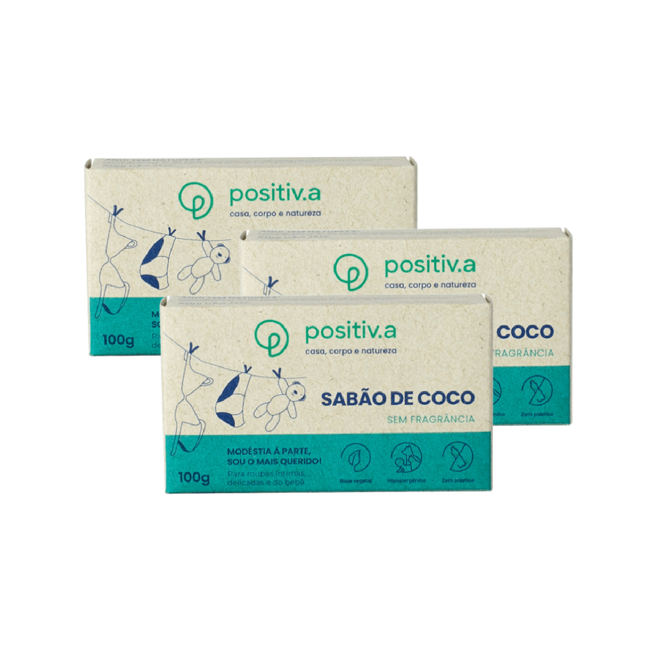 O Sabão de Coco em Barra da Positiv.a dá brilho em panelas e talheres, além de ser hipoalergênico, biodegradável e de base 100% vegetal, perfeito para utensílios do bebê, pets e toda família, contém óleo de coco orgânico, fortalece agricultura familiar, não agride sua pele, sua saúde e o meio ambiente.