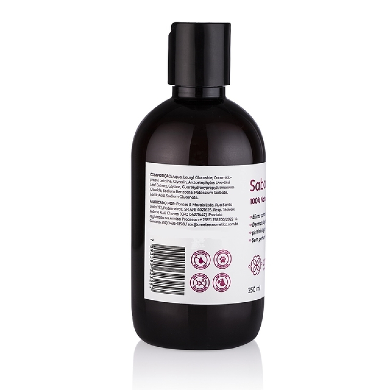 Composição: Aqua (Água), Lauryl Glucoside (agente limpante suave de origem vegetal), Cocamidopropyl betaine (agente limpante suave , Glycerin, Arctostaphylos Uva-Ursi Leaf Extract, Glycine, Guar Hydroxypropyltrimonium Chloride, Sodium Benzoate, Potassium Sorbate, Lactic Acid, Sodium Gluconate