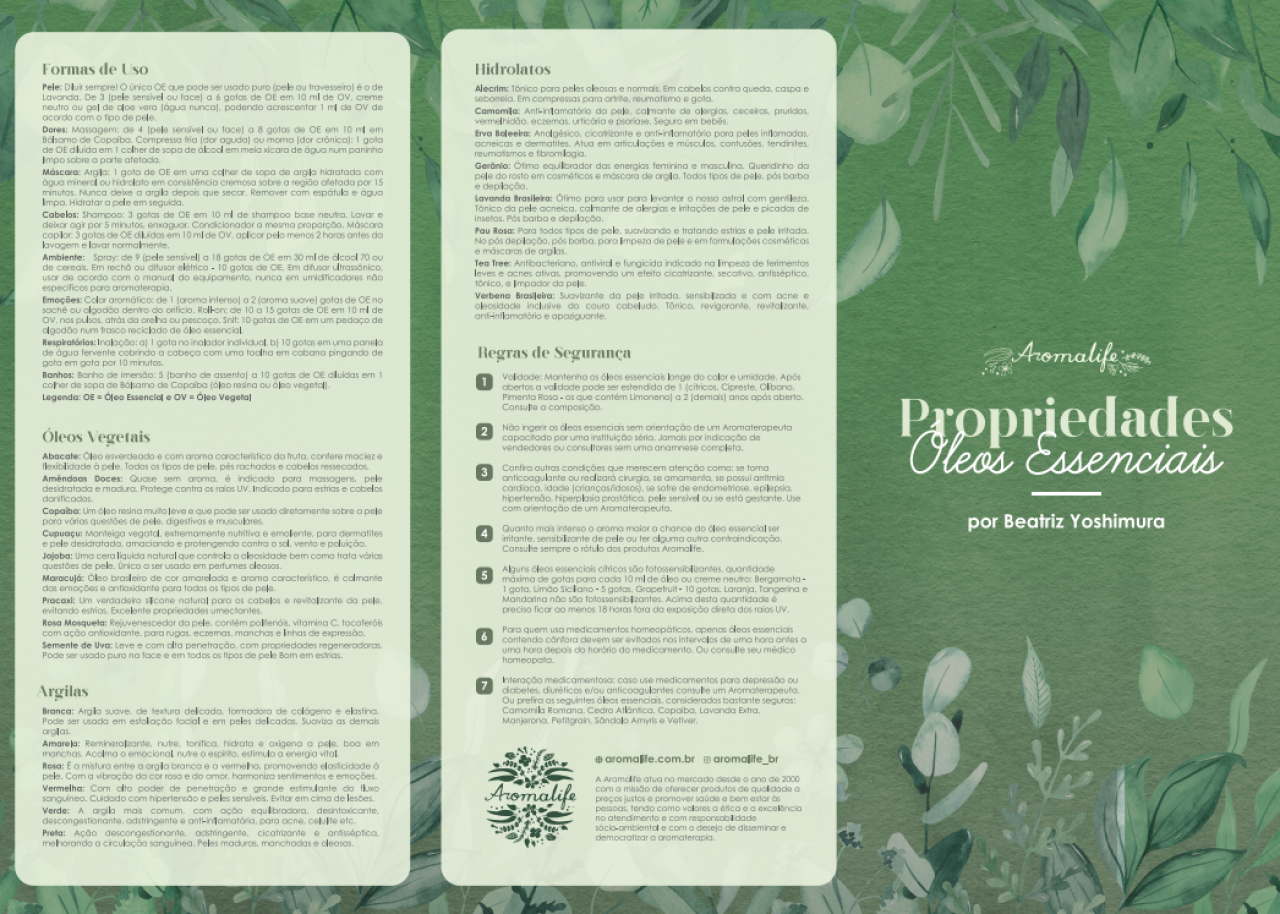 Tabela de propriedades 2 - Óleos Essenciais